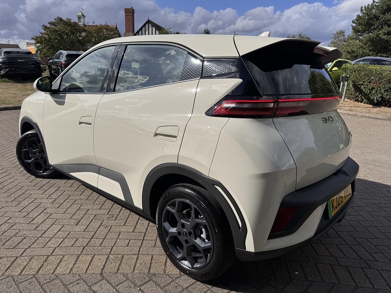 4 seats, Metallic Apricity White, Upgrades - Vegan Leather - Black and Grey, Standard Features - 10.1in Electrically Rotatable Touchscreen, 11kW On-board Charger - OBC, 12V Power Output, 16in Alloy Wheels, 2x Smart Key, 7in Digital Instrument Panel, Adaptive Cruise Control - ACC and Intelligent Cruise Control - ICC, Anti-Theft Alarm, Anti-lock Brake System - ABS, Apple Carplay - Android Auto, Audio System - 4 Speakers, Auto Hold, Automatic Emergency Braking - AEB, BYD digital key, Cloud Service - BYD App, Comfort Stop - CST, DAB Plus and FM, Driver Monitoring System - DMS, Driver Seat - Electrically Adjustable - 6 Ways, Driver Side Window - One-click Lift and Anti-pinch, Drivers Airbag, Driving Modes - Eco - Normal - Sport - Snow, Electric Parking Brake - EPB, Electronic Brake Distribution - EBD, Electronic Immobiliser - Thatcham Category 2, Emergency Call, Emergency Lane Keeping Assist - ELKA, Exterior Mirrors - Electrically Adjustable - Electrically Folding - Heated, Follow Me Home, Forward Collision Warning - FCW, Front Centre Armrest - 2 Cupholders, Front Passenger Seat - Electrically Adjustable - 4 Ways, Front Passengers Airbag with Deactivation Switch, Front Seats Sun Visors with Illuminated Mirror, Front Side Airbags, Front USB Port - 1 x 18W Type A - 1 x 60W Type C, Front Windscreen - Rain-Sensing Wipers, Halogen Headlights - Automatic On - Off, ISOFIX and i-Size - Front Passenger and Outer Rear Seats, Intelligent High Beam Control - IHBC, Intelligent Power Brake - IPB, Intelligent Speed Limit Control - ISLC, Intelligent Voice Control - HI-BYD, Keyless Entry and Keyless Start, LED Daytime Running Lights, LED Front Reading Lights, LED Taillights, Lane Departure Assistant - LDA, Manual Climate Control, Mechanical Child Safety Lock, Mode 2 Charging Cable, Mode 3 Type 2 Charging Cable, Navigation, Onboard 4G Connectivity, Pre-tensioned and Force Limiter - Seat Belts, Rear Camera, Rear Fog Lights, Rear Parking Sensors, Rear Windscreen - Privacy Glass, Side Curtain Airbags, Split Folding Rear Seats - 50-50, Towing Hook, Traction Control System - TCS, Traffic Sign Recognition - TSR, Tyre Nut Covers Remover, Tyre Pressure Monitoring System - TPMS, Vegan Leather Multi-function Steering Wheel, Vehicle To Load Function - 3.5kW, Vehicle To Load Function - V2L, Velour Floor Mat