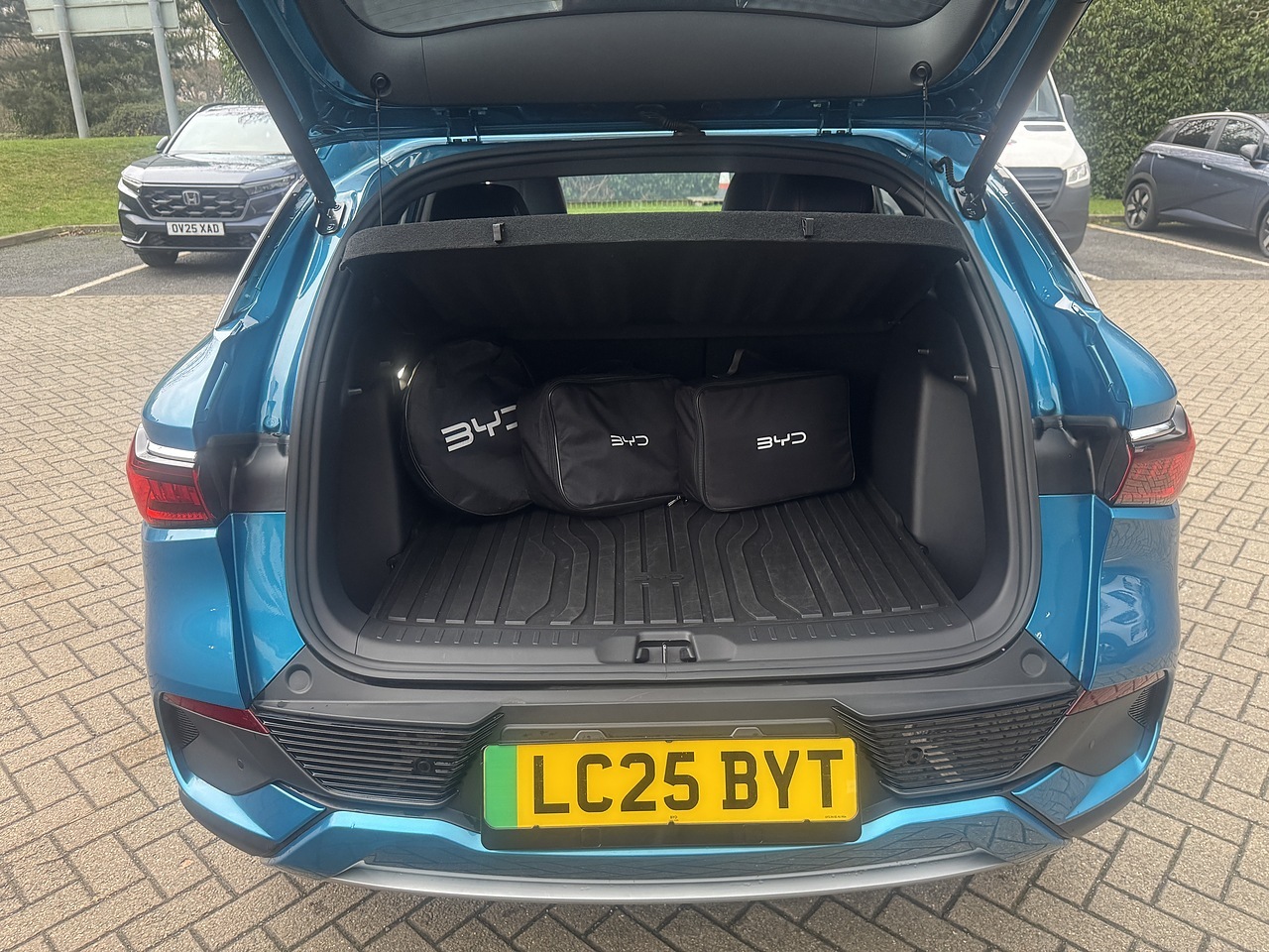 This 2025 BYD Atto 3 Design presents an exceptional ownership proposition with its remarkably low mileage of just 2080 miles, a testament to its single owner and full service history. As an electric vehicle, it boasts a 60 kWh battery offering a maximum range of 260 miles, with a convenient full home charging time of 9 hours 42 minutes using a 7kW charger. For quicker top ups, it can reach 80% charge in just 40 minutes at a rapid public charging station., , The BYD Atto 3 Design is equipped with a suite of notable features designed to enhance your driving experience. These include integrated Smartphone Wireless Charging, an electric Panoramic Sunroof with anti-clamping functionality, and a Panoramic Viewer complemented by a 360-degree camera system for effortless parking assistance, further aided by front parking sensors. Automatic headlights ensure optimal visibility in varying conditions. The generous boot space provides ample room for all your needs, making this electric SUV a practical and well appointed choice., Full service history, Good bodywork, Multicolour Full leather interior - Good Condition, Tyre condition Good, 5 seats, Metallic Surfing Blue, 1 owner, Upgrades - Vegan Leather - Blue and Grey, Standard Features - 11kW On-board Charger - OBC, 12V Power Output, 15.6in Electric Rotary Touchscreen, 18in Alloy Wheels, 2x E-Key and 1x NFC Key, 2x Front Parking Radar, 2x Front USB Charge Port - 1x Type A and 1x Type C, 2x ISOFIX in Outer Rear Seats and 1x ISOFIX in Front Passenger Seat, 2x Rear USB Charge Port - 1x Type A and 1x Type C, 4x One-touch Lift Window with Anti-clamping Function, 4x Rear Parking Radar, 5in TFT Full LCD Instrument Panel, 8 Speaker Audio System, Adaptive Cruise Control - ACC and Intelligent Cruise Control - ICC, Aluminium Roof Rail, Anti-lock Brake System - ABS, Auto-dimming Rear View Mirror, Automatic Emergency Braking - AEB, Automatic Headlights, Automatic Vehicle Hold - AVH, BYD DiLink, Belt with Pretensioner and Force Limiter, Blind Spot Detection - BSD, Centre Armrest with Dual Cupholder, Cloud Service, Comfort Stop - CST, Continental 235-50 R18 Tyres, DAB Radio and FM Radio, Direct Tyre Pressure Monitoring System, Door Opening Warning - DOW, Driver Seat with 6-Way Electric Adjustment, Driver and Front Passenger Footlights, Driver and Front Passenger Sun Visors with Illuminated Vanity Mirror, Drivers Airbag, Electric Parking Brake System - EPB, Electric Tailgate, Electrically Folding and Heated Exterior Mirrors, Electronic Brake Distribution - EBD, Electronic Stability Program - ESP, Emergency Call, Emergency Lane Keep - ELK, Follow Me Home Headlights, Footlights for Exterior Rear View Mirrors, Forward Collision Warning - FCW, Four LED Door Lights, Front Centre Airbag, Front LED Reading Lights, Front Passenger Seat with 4-Way Electric Adjustment, Front Passengers Airbag with Deactivation Switch, Front Seat File Bag, Front Side Air Curtain, Heat Pump, Heated Front Seats, High Beam Assist - HMA, Hill Decent Control - HDC, Integrated Park Brake - IPB, Intelligent Speed Limit Information - ISLI and Intelligent Speed Limit Control - ISLC, Internet of Vehicles - 4G, Keyless Entry and Keyless Start, LED Daytime Running Lights, LED Headlights, LED Taillights, Lane Change Assist - LCA, Lane Keep Assistance - LKA, Mechanical Child Safety Lock, Mode 2 Charging Cable, Mode 3 Type 2 Charging Cable - 3-phase, PM2.5 Air Purification System, Panoramic Sunroof - Anti-clamping Electric, Panoramic Sunroof Sunshade, Panoramic Viewer, Rear Collision Warning - RCW, Rear Cross Traffic Alert - RCTA and Rear Cross Traffic Brake - RCTB, Rear Seat Air Vents, Rear Seats Centre Headrest, Rear Side LED Reading Lights, Rear Trunk Parcel Shelf, Rhythm-reactive Multi-colour Ambient Lighting - Door Panel and Pad, Rhythm-reactive Multi-colour Ambient Lighting - Doorknob, Seat Belt Warning, Smartphone Wireless Charging, Split Folding Rear Seats - 40-60, Traction Control System - TCS, Traffic Sign Recognition - TSR, Vegan Leather Multi-function Steering Wheel, Vehicle To Load Function - V2L, Voice Control, ALL VEHICLES ARE METICULOUSLY PREPARED,PLEASE CALL FOR INFO., £24,495
